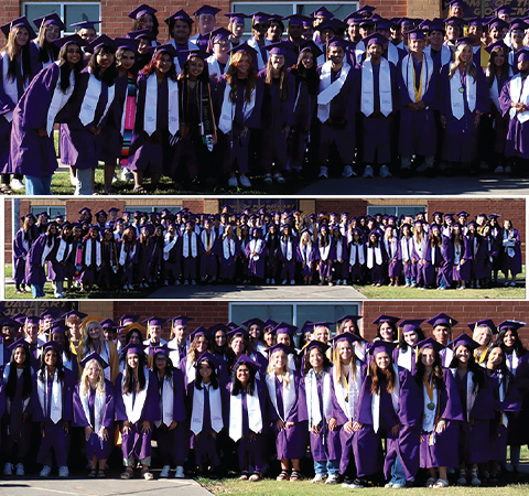 The DHS Class of 2024 posed in front of Dalhart High School on Spirit Trail after walking through the other campuses, including the two previous high school buildings.